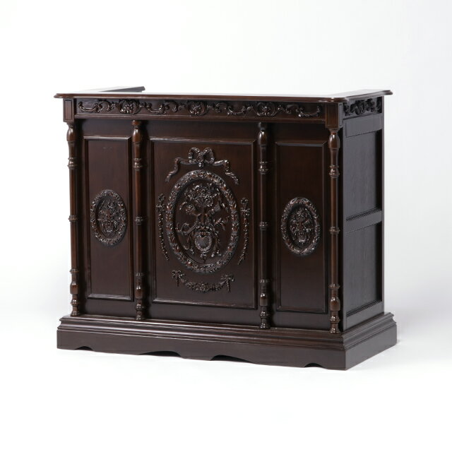 カウンター レジカウンター 受付カウンター アンティーク アメリカ ヨーロッパ フランス アンティーク調 中古家具 大人 インテリア 姫系 内装什器 店舗什器 店舗用家具 ショップ什器 レセプションカウンター ディスプレイ家具 可愛い カントリー ロココ ロココ調 クラシックフレンチスタイル カウンター 1.2M ブラウン 5050-1.2-5(画像をクリックすると拡大します)正面にはフレンチスタイルのシックなデザイン。