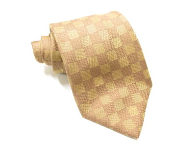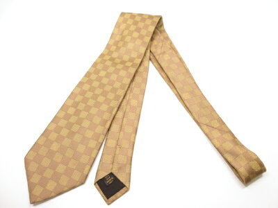 超美品【ルイヴィトン LOUIS VUITTON】 素敵なダミエ柄♪ シルクネクタイ (メンズ) ベージュ×ゴールド系 イタリア製 □17MM8652□【中古】